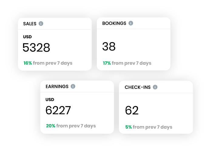 Get a quick glance into your business statistics, view visible gains, losses, bookings, cancellation, etc. week over week. Get insights through detailed graphs on your dedicated analytics dashboard.